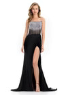This stunning Ashley Lauren gown features a meticulously beaded bodice that catches light from every angle, paired with structured boning for a flawless silhouette. The strapless neckline offers elegant sophistication, while a dramatic split adds modern allure and movement. Perfect for making an unforgettable entrance at formal events, proms, or red carpet occasions.